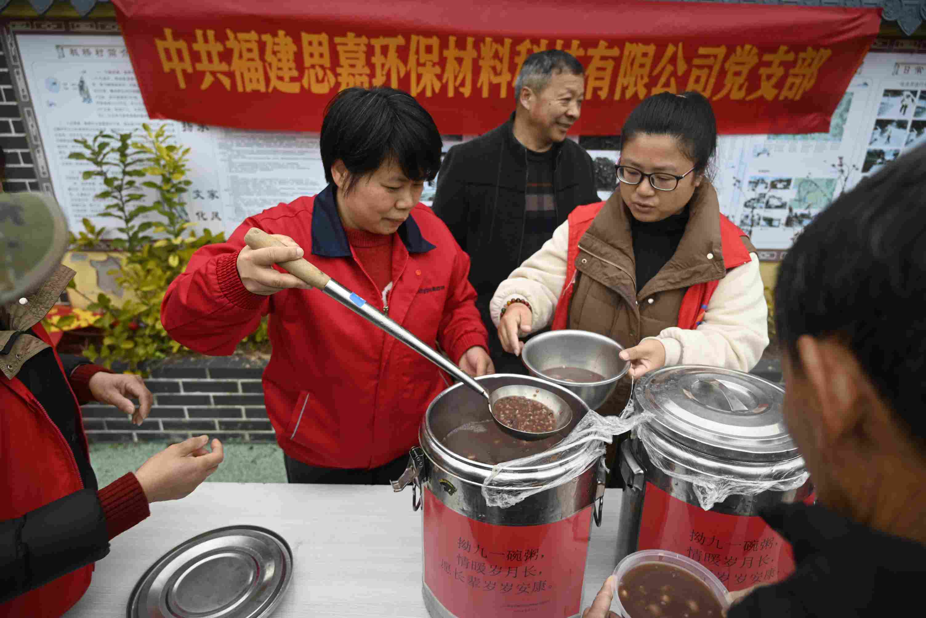 在常態(tài)化幫扶之外,思嘉更將公益融入傳統(tǒng)民俗,讓溫暖在節(jié)日中傳遞。每逢拗九節(jié),思嘉便會(huì)聯(lián)合周邊村委會(huì)開展“拗九暖春”公益活動(dòng)?;顒?dòng)現(xiàn)場(chǎng)設(shè)置了專門的發(fā)放點(diǎn),思嘉人穿戴整齊,有序?qū)竞玫霓志胖嗍⑦M(jìn)碗里,逐一送到前來(lái)領(lǐng)取的村民手中。思嘉人將一碗碗熬煮入味的拗九粥送到村民手中,用傳統(tǒng)美食傳遞鄰里溫情,讓全村老少在春日里感受到濃濃的關(guān)愛。