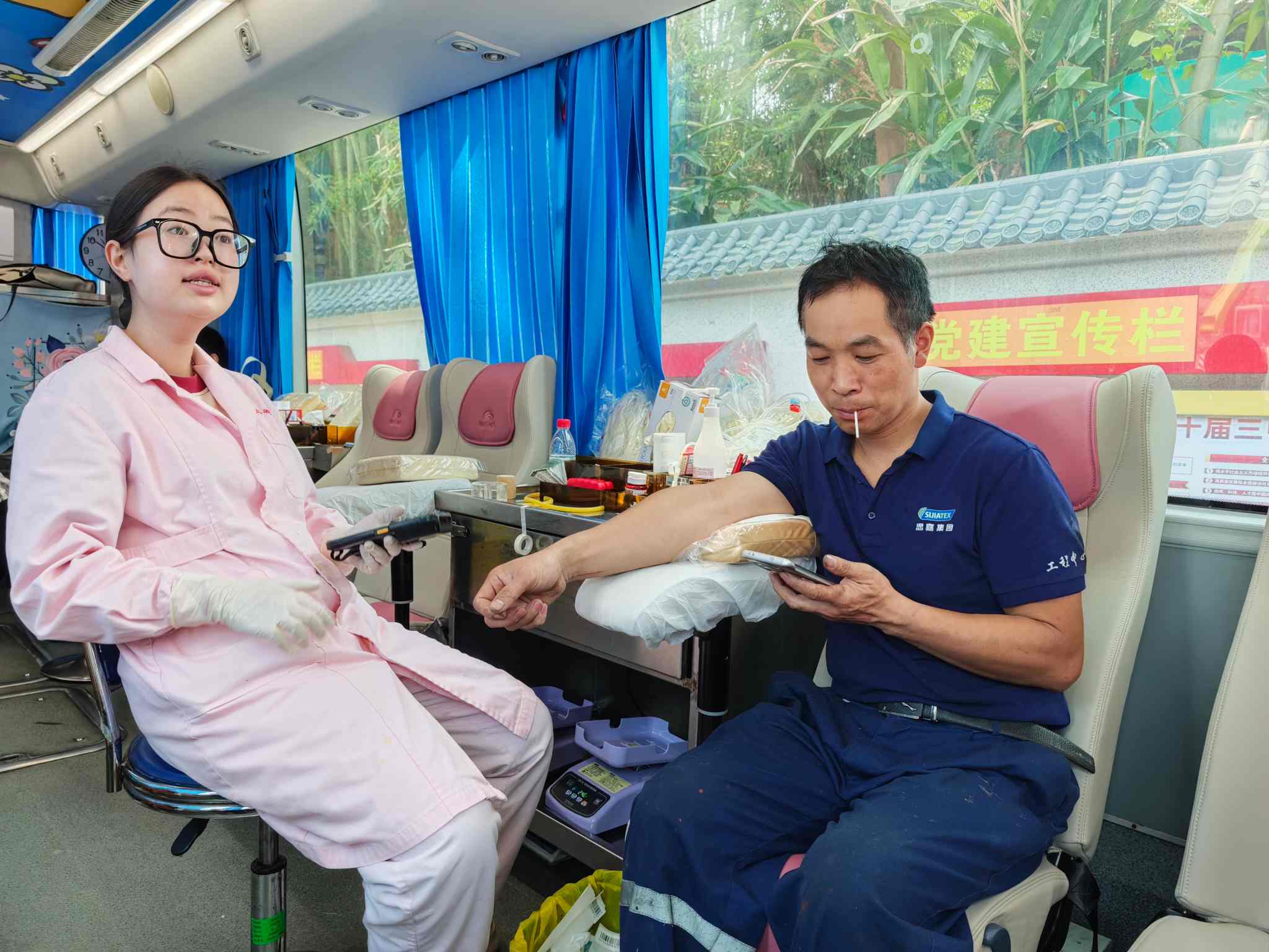 活動前期,公司通過多種渠道,向員工普及無償獻血的重要意義、健康要求及注意事項,充分調動員工的參與積極性?;顒赢斕欤技稳岁懤m(xù)前往指定的獻血點,有序排隊進行各項流程。在獻血車內,思嘉人勇敢挽起袖子,獻出自己的愛心。